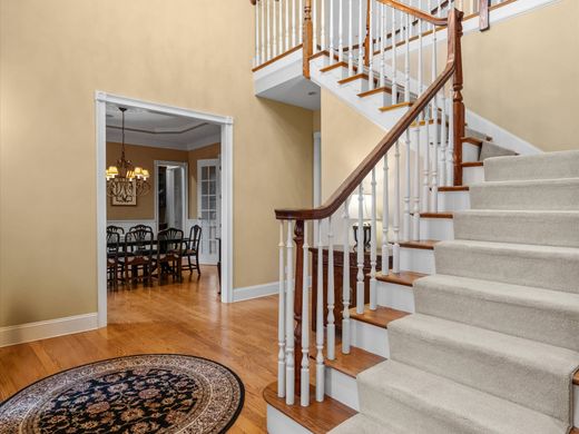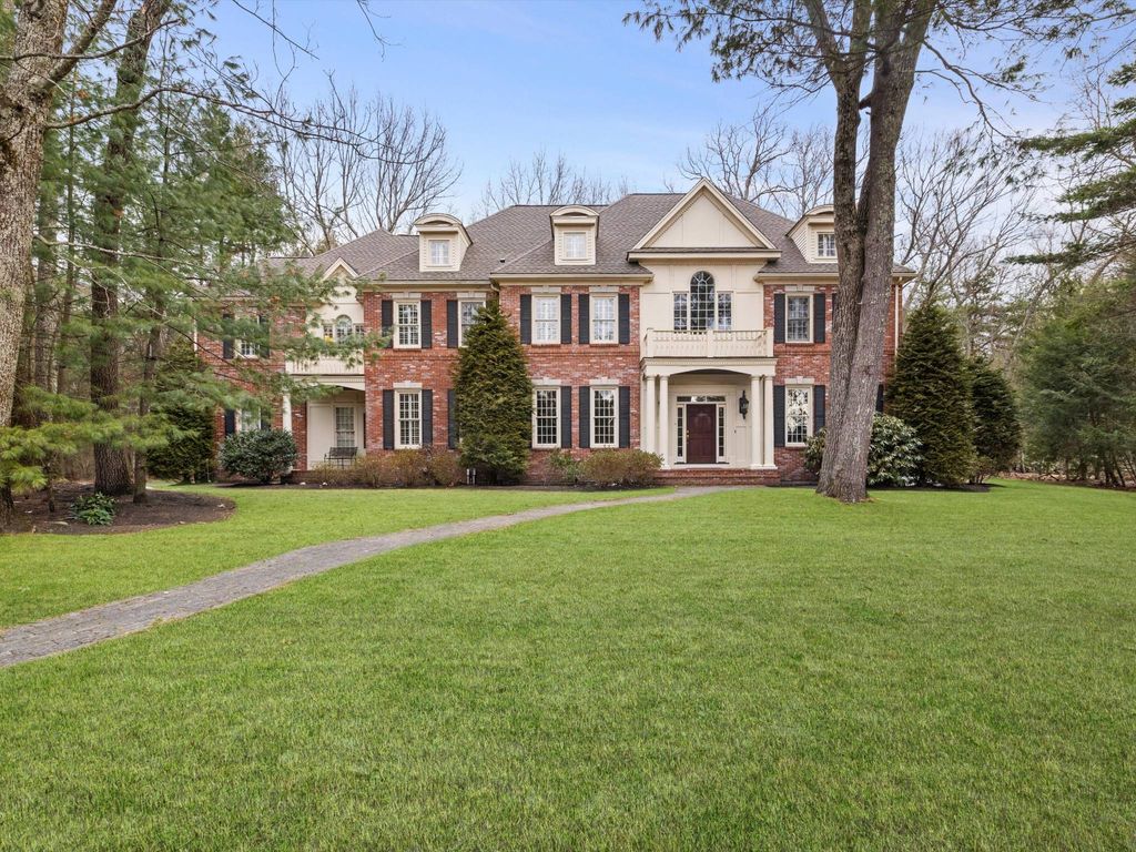 Nestled off the road amongst mature trees and stone walls sits this stately brick colonial. This custom home features a fantastic, functional floorplan. As you enter the 2 story foyer you are greeted with gleaming hardwoods and an open floor plan. A large 2 story family room features a floor to ceiling stone fireplace and a wall of French doors, bringing the outside in and allowing extensive natural light. This is carried into the large chefs kitchen with high end appliances, custom cabinetry, ample counter space and a butlers pantry which seamlessly connects with the dining room; perfect for entertaining. A fireplaced living room, sunroom and wood paneled fireplaced office with endless built ins flank the far end of the home. The 2nd floor features a massive primary suite with gas fireplace and a balcony overlooking the private wooded rear yard. 4 more generous sized bedrooms and a second floor laundry complete the 2nd floor. The 3rd floor features a game and media room and full bath.