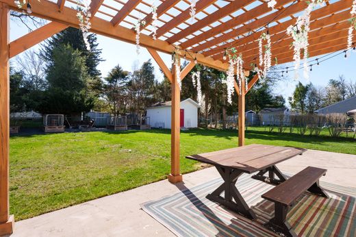 Full of charming warmth and smart updates, this Cape-style home sits on a quiet street just around the corner from a neighborhood playground and only 1 mile from Hamilton train station. A fenced, level backyard is ready for fun and function with two storage sheds, a raised vegetable garden and a patio shaded by a pergola. Driveway parking and a convenient side entry lead into the updated eat-in kitchen, where quartz countertops, a gas GE range and recessed lighting create a bright, modern workspace. Easy-care vinyl flooring runs throughout the main level, complemented by soft, neutral paint colors and a sunny bay window in the living room. A crisp, all-white full bath stands just outside two quietly tucked-away corner bedrooms and stairs down to the recently finished basement. You’ll be pleased to find valuable extra living space with high ceilings, natural light and ample storage. Upstairs, two generously sized bedrooms feature true hardwood floors, including one with a walk-in closet. A gliding barn door reveals a stylish black-and-white full bath. Mini-split A/C units on both levels allow for efficient, customized comfort. Come see all the reasons why this is the essence of home sweet home!
