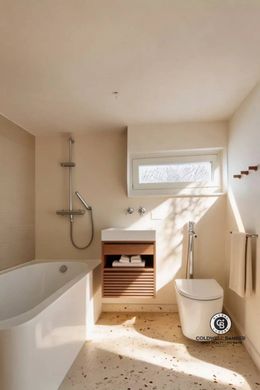 - Bathroom — Bathtub or walk-in shower, as chosen by the buyer. Abundant natural light thanks to its high window.