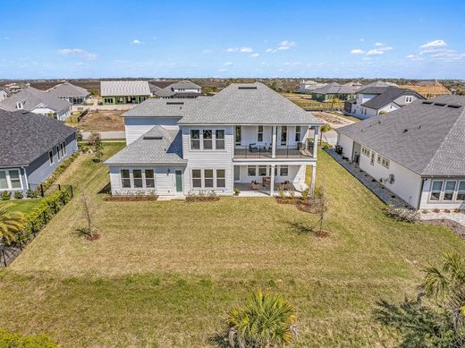 Life at Madeira is full of sunny days, leisurely walks full of stops to take in the scenic marsh views and benches from which to watch the parade of water birds. 164 Tesoro Terrace is a custom-built luxury home on a coveted 85 foot lot with tidal marsh and preserve vistas and it is poised to welcome you to your new lifestyle. Built in 2024 by the respected builders at MasterCraft, this 4,224SF two story home features multiple outdoor living areas and a three car garage. Designed for flexibility, comfort and multigenerational living, all with a decidedly coastal style, there are four bedrooms, each with their own bath, including a primary suite on both floors and a fifth bedroom when the guest list is long. The open-concept floor plan is filled with natural light, enhanced by ten foot ceilings, engineered hardwood floors, and designer finishes throughout. The kitchen is a standout, featuring floor-to-ceiling cabinetry, quartz countertops, a large center island, pot filler, spice pullout and premium Samsung appliances. A walk-in pantry and large laundry room are off the kitchen and adjacent to the garage entry. The first floor primary suite provides a private retreat with a spa-inspired bathroom, freestanding soaking tub, walk-in shower, and generous closet. Enjoy morning coffee and evening sunsets on the covered patio which opens to the main suite and dining room. A micro workstation and half bath are tucked away off the kitchen. The flex room off the main foyer is ready to be formal dining, a family media or playroom, large office or home gym. An additional first floor bedroom and bath are located up front. Upstairs a spacious sunlit family room is another gathering space for family and friends. A second primary en-suite opens to a covered porch that overlooks the tidal marsh. The fourth bedroom enjoys a private bath which also serves the family room and the fifth bedroom or flex space. The oversized backyard is ready for a custom pool, screened enclosure and outdoor kitchen, with pre-installed plumbing, gas, and electrical connections already in place. With additional upgrades added, including a smart home security system, water softener, and dual tankless water heaters, this home blends modern luxury and thoughtful design in one of Northeast Florida’s most sought-after communities - be sure to make time to explore clubhouse, fitness center, firepit and pool. Welcome home.