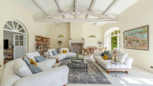 Ramatuelle villa 318 sqm one hectare land near Pampelonne beach sea view 5 bedroom property French Riviera Located in Ramatuelle, just a few minutes from Pampelonne Beach and close to Saint-Tropez, this property offers approximately 318 sqm of living space set on one hectare of landscaped land. The villa enjoys a dominant position with open views over vineyards and partial sea views, in a quiet and private environment with no overlooking. The main house is arranged over two levels. The ground floor includes an entrance hall, a spacious living room with fireplace, a dining room with a second fireplace, a kitchen with direct access to outdoor areas, a media room, a laundry room and two en suite bedrooms. The upper level features two additional en suite bedrooms, providing a well balanced layout for family or guests. An independent studio apartment with bathroom offers additional accommodation, suitable for guests or staff. The property includes features such as air conditioning, underfloor heating and functional fireplaces, ensuring comfort throughout the year. The grounds are landscaped with mature Mediterranean vegetation including olive trees, cypress, parasol pines and citrus trees, structured by traditional stone terraces. Outdoor amenities include several terraces, a heated saltwater swimming pool and elevated areas designed to enjoy the views. The property benefits from two secure gated entrances, allowing separate access, including for service vehicles. Parking areas accommodate 7 to 8 vehicles, both equipped with electric charging stations. Easy access to Pampelonne Beach, Saint-Tropez and local amenities. This property is suitable as a primary residence, second home or high end rental investment in Ramatuelle, one of the most sought after areas on the French Riviera. Côte d’Azur Sotheby’s International Realty For further information or to arrange a private viewing, please contact Côte d’Azur Sotheby’s International Realty.