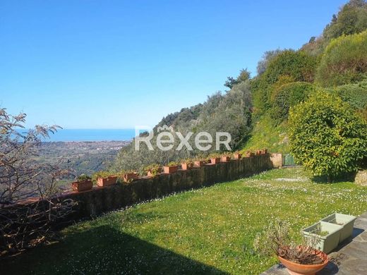 REF. 386866 - Agent contact details: Francesco Vito Maranci 0299224430 - Rexer Exclusive's choice. On the first hills of Camaiore, we offer for sale a detached villa with an outbuilding and swimming pool with breathtaking sea views, surrounded by greenery and tranquility. Access is via a well-maintained country road, with a double entrance gate, the first shared with other properties and a second private gate a few dozen meters away that leads to the entrance courtyard to the villa with parking for several cars. The main villa has a surface area of over 305 square meters and is arranged on three levels, including an entrance to a living room with windows overlooking the sea, an eat-in kitchen, five bedrooms, and five bathrooms. The outbuilding, with a cadastral surface area of 95 square meters, consists of an entrance to a living room with an open-plan kitchen, a bedroom, and two bathrooms. The garden with views of the Versilia sea, the swimming pool, and the surrounding land with olive trees and woodland (approximately 2 hectares) complete the property. Excellent overall condition. Total covered area of over 400 square meters.--c32ca1c23e4e857240a5c10a0de45e88!