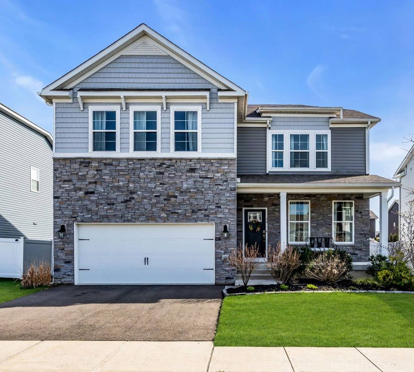 Introducing 59 Holloway Ave in the Stafford Park community of Manahawkin. This five-year-old Hadley Model features fantastic curb appeal with numerous upgrades. The open-concept living space, perfect for entertaining, features a gourmet kitchen with large center island, stainless steel appliances, quartz counters, and pantry. The layout includes four bedrooms (including one on the 1st floor) and three full baths. The second floor boasts a primary suite with a walk-in closet and a spa-like bath featuring double sinks, a shower, and a soaking tub. Also, find a spacious loft with endless possibilities, two additional bedrooms, and a convenient laundry room. vinyl flooring on both levels. Outside, the yard is fully fenced and features a 40ft paver patio and lawn sprinkler system. The unfinished lower-level features high ceilings and ample opportunity for customization. The property is ideally located just a short distance from LBI beaches, shopping, and restaurants. Unpack and enjoy!