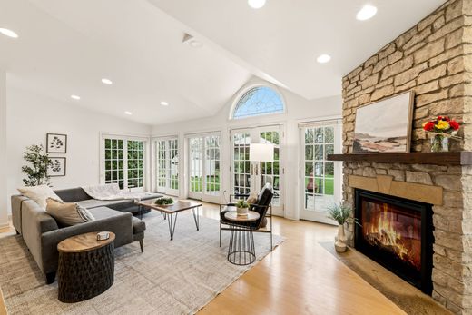 Step into timeless elegance in this captivating Tudor-inspired Cape Cod in the desirable Elmhurst neighborhood. This light-filled five-bedroom (including a versatile den), two full and two half bathroom bathroom home boasts an intuitive flow, highlighted by gleaming hardwoods, exquisite crown molding, and stunning stained-glass windows. The inviting family room features vaulted ceilings, one of two gas fireplaces, and French doors opening to a private, 0.53-acre yard. Masterfully designed for hosting, the home transitions from formal living and dining spaces into a gracious eat-in kitchen, both featuring built-in cabinetry. The massive lower-level rec room and flex room provide endless possibilities. Nestled within the elite Elmbrook School District, this home is a rare, sophisticated blend of old-world charm and modern comfort on a sprawling, serene homesite.