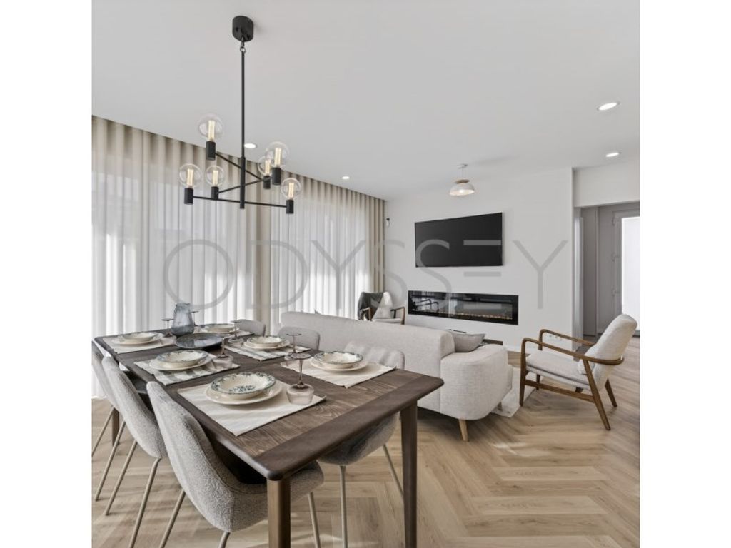 - Open-plan living and dining