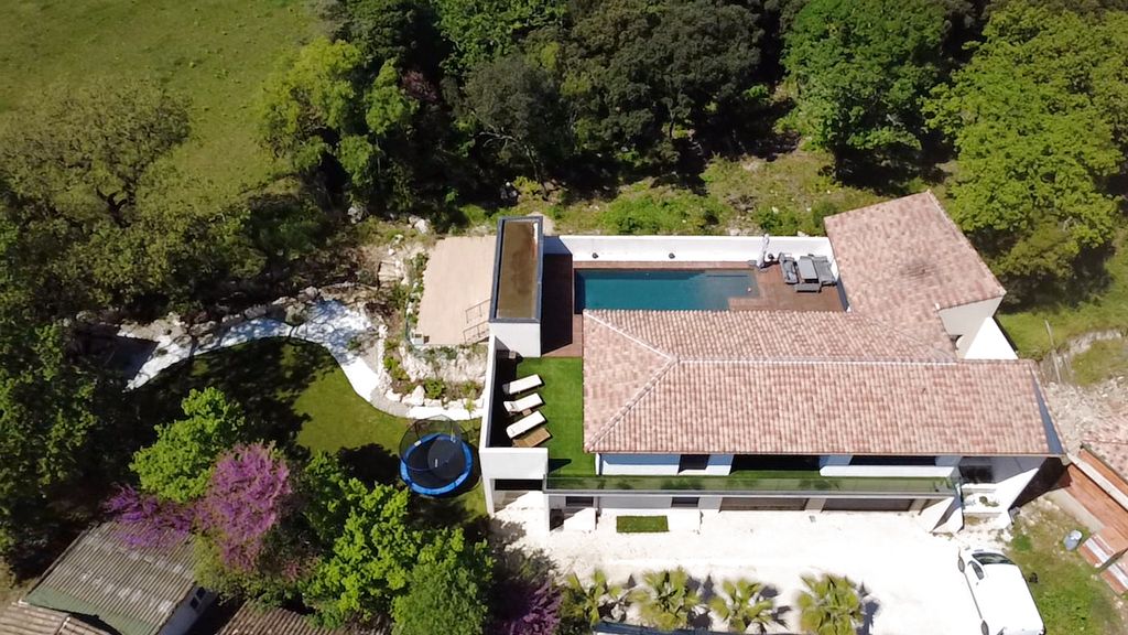 Just a 10-minute walk from the town centre, discover this contemporary 174 m2 villa with swimming pool for sale in Sommieres, ideally located in a dominant position with unobstructed views and no overlooking neighbors, built on a plot of over 1800 m2. This modern family home comprises, on the ground floor, a sleeping area with 3 bedrooms , a shower room, a separate WC, as well as a double garage and laundry room of 44m2. Upstairs, you'll be captivated by a large, bright living room with an open-plan, fully equipped kitchen and direct access to the outside. A master suite with a bathroom and dressing room completes this level. You will enjoy a pleasant outdoor area with a swimming pool , in a quiet, residential and sought-after environment in close proximity to amenities. - Recent villa - Dominant view - Pool - Ducted air conditioning - Sliding glass doors - Built-in speakers - Ten-year warranty This villa for sale in Sommières offers high-end amenities in a highly sought-after area of the Gard. A rare find on the market? Ideal for a primary or secondary residence. GENOVES Elise, registered with the RSAC of Montpellier under number 942 054 024 07 87 66 41 30 Open to inter-agency collaboration Information on the risks to which this property is exposed is available on the Géorisques website www.georisques.gouv.fr Find all our listings on our website www.wahuman.com
