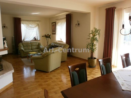 #HOM IN GERMANY. NEW LOWER PRICE I recommend you a residence located in a great location of Niemcza, near the forest and the municipal park-Myślcinek. House and garden made according to an individual project. In the garden there is a pond, gazebo, basketball court, woodshed, own garden well for watering (distributed water points). The garden is covered with numerous perennial plants. A wide driveway with cobblestones leads to the building. The house is built and finished with high-quality materials. The 50 cm thick walls of the house (ceramic block + mineral wool + ceramic block) guarantee good insulation in winter and summer. The roof is covered with high-quality ceramic tiles - Hugenot. On the ground floor of the house there is a spacious living room with dining room and kitchen, office and toilet. In the utility part there is a boiler room, laundry room and a passage to the garage. The entire ground floor is closed by a large hall. In the living room there is a fireplace with the distribution of warm air around the house. On the first floor there are four spacious bedrooms and a bathroom. Master bedroom with wardrobe and bathroom. In all rooms, oak parquet on the floor, underfloor heating in bathrooms, hall and kitchen. Possibility of additional use of the attic. I recommend you this beautifully arranged residence located in the charming location of Niemcza. PRICE IS NEGOTIABLE. Stairs lined with wood with a metal railing lead to the first floor. Additional rooms: a dressing room on the ground floor of 9.8 m2, a garage for two cars with an area of 43 m2, a dressing room on the first floor of 5.5 m2. Manually operated external roller shutters in all windows (large display windows with electric control). Intermediary professionally responsible for the performance of the brokerage agreement: Małgorzata Tokarska (license no .: 14714) -------------------- ------ Art-Centrum Nieruchomości reserves that the content of this announcement does not constitute an offer within the meaning of the Civil Code. Please treat them as an invitation to negotiations within the meaning of Art. 71 of the Civil Code. Offer sent from the Galactica Virgo system