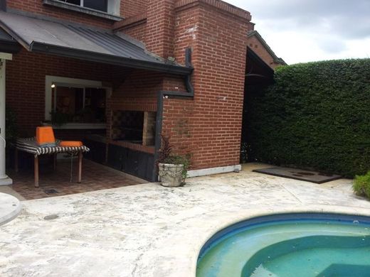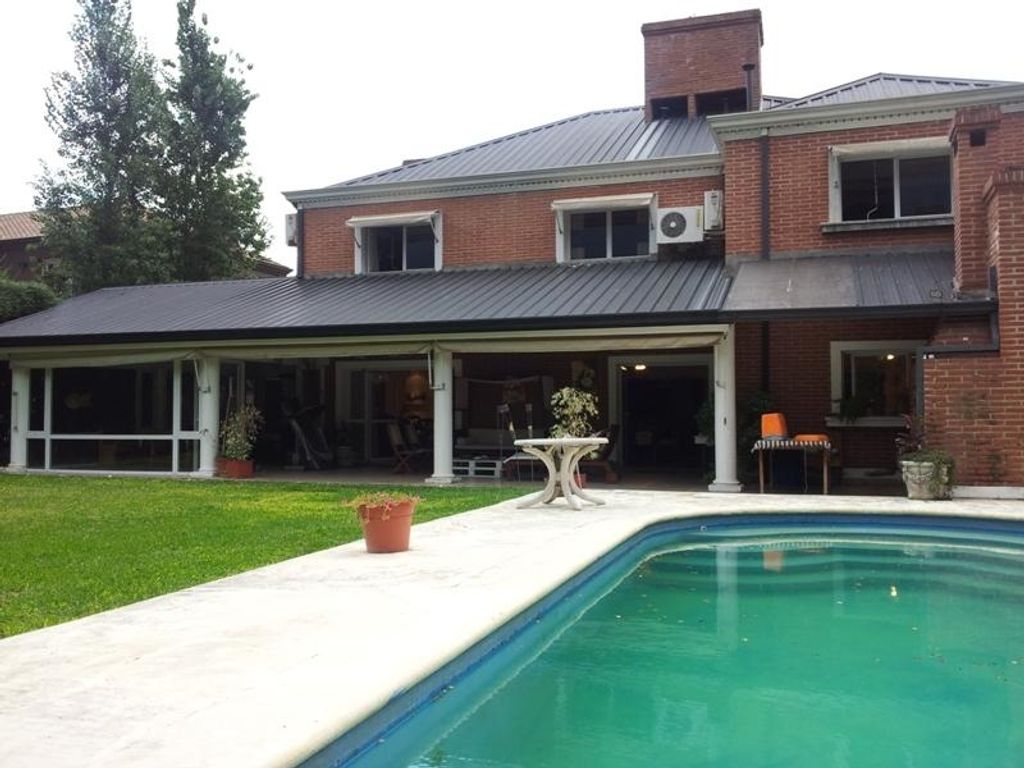 This beautiful two-story property sits on a 990 m2 lot in Las Colinas 1. Its exterior features exposed brick, with black aluminum ceilings and carpentry. The upper floor features three bedrooms (one en suite) and two bathrooms. There's also a private living room and a study space that opens onto a large balcony. On the ground floor, the house is accessed through a substantial entrance hall with a grand iron staircase. The entire reception area can be integrated, creating a spacious feel, as the spaces are separated by sliding doors. The modern kitchen features black granite countertops and a central island. All these spaces open onto the gallery and from there to the garden and pool, complete with a waterfall and filter. To one side of the house, connected by the gallery, is a playroom measuring approximately 4 x 7 m. Also on the ground floor is another en-suite bedroom, suitable for guests. The garden is fully landscaped. The house is built with an earthquake-resistant system like a building, with a solid slab roof on both floors. The exterior walls are double-stacked with a 15 cm air chamber filled with Styrofoam. The interior walls are made of double rows of hollow bricks.