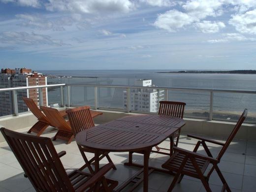 Category Penth House at stop 3 of Playa Mansa, with magnificent views of the bay of Punta Del Este, distributed on two floors with independent access and elevator arrival, fine decoration It has a ground floor with 2 main bedrooms en suite, 2 bedrooms plus bathroom complete.- Defined kitchen, with access to a terraced balcony and unbeatable view.- Upper floor, with a large living room with high ceiling, and access to a large terrace, bedroom with bathroom, barbecue and laundry room.- The services are distributed on the ground floor and First floor, Ground floor: Outdoor pool Heated pool Living rooms Sauna with Scottish shower 6 meter high hall and microcinema Two party rooms with barbecue. First floor: Equipment room Living room Gym room Porter Laundry room -staff dressing room Games room.- * Consult financing.- OCM Estudio www.ocmestudio.com.uy Office: (00598) 4247 9613 Punta del Este