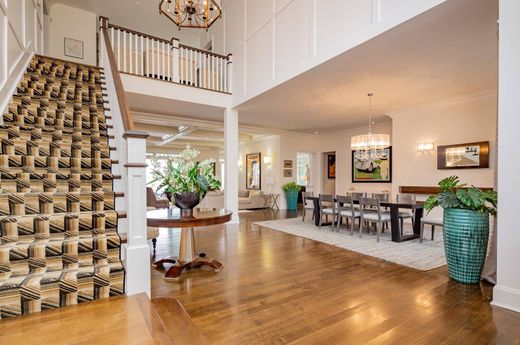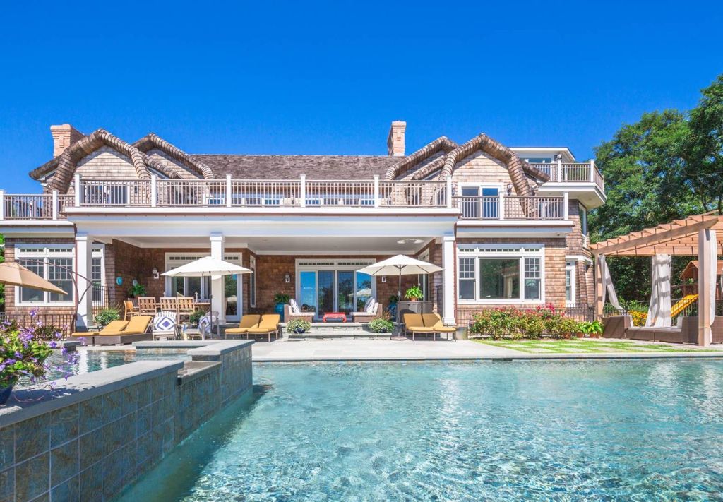 Situated on nearly 2 acres within a gated south-of-the-highway enclave, a 6,800 SF, 8+ bedroom traditional residence sits perched aside Kellis Pond, one of the Hamptons most beautiful freshwater lakes. Completed in 2014, the home's double-height foyer leads to various living areas including a bright, formal living room with fireplace, a formal dining room, adjacent butler's pantry and a custom gourmet kitchen with its own spacious den and breakfast room, complete with wood-burning pizza oven. Rounding out the first floor are two guest bedrooms and a sumptuous, sunlit master bedroom suite, featuring ample closet space and a spa-like marble bathroom. Take the wide staircase to the second floor which boasts a welcoming open recreation room with a full wet bar, wood-burning fireplace, billiard area and an adjacent outside terrace, made of Brazilian Ipe wood. Two additional master suites occupy the second floor, the southern-most with a radiantly-heated solarium tower with a walk-around deck and the northern-most suite with a private terrace and large, accommodating closets. Two additional guest bedrooms and a laundry center complete the 2nd floor. The lower level offers a full gym, additional staff bedroom, a lower ""pool house"" area with stairs to the outside, and unfinished areas pre-wired for a theater and wine room. An elevator connects all three levels of living space. The lakeside grounds offer an infinity edged pool with spa and waterfall. Enjoy all the wonders Kellis Pond has to offer: fishing, kayaking or sailing from one of the two beaches right on the property. Four-star accommodations and countless amenities define this unique offering.