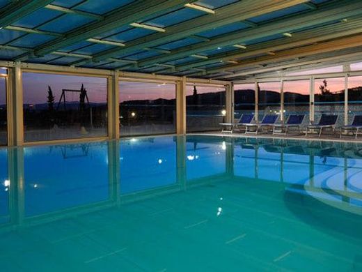Finnish sauna. Turkish bath. Hot and cold Scottish shower. UV integral solar shower. Kneipp foot path. An indoor and heated swimming pool (winter only), about 17 x 10 meters, with waterfall; An outdoor pool, about 15 x 7 meters; The two pools have a maximum depth of 1.45 meters and access with "beach edge"; An area of water falls outside; A baby tub, depth 20 cm. The Center includes a large gym (70 square meters).
