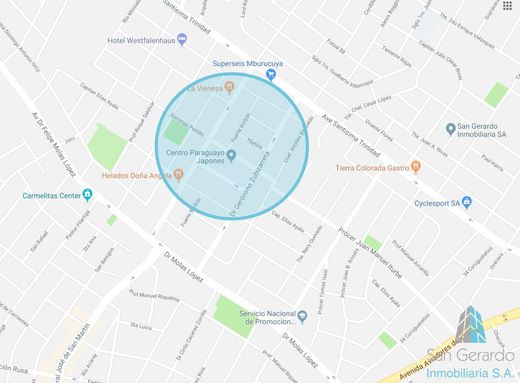 I sell property in the Mburucuyá neighborhood, Centro Paraguayo Japonés area, CPJ. Description: It consists of 3 lots, each one has a front of 15 meters. for 26 meters deep, surface of each lot = 390 m2. Total area 1,170 m2. Residential Area 2A, building coefficient 2.4. Prices separately: Lot where the shed is located: USD 225,000 Lot where the vacant lot is located: USD 215,000 Lot where the house is located (corner): USD 230,000 Price for total land: USD 650,000 Observation: All information, images and measurements provided are approximate and must be ratified with the relevant documentation and do not contractually commit the company. The expenses, expenses, expressed refer to the latest information collected and must be reconfirmed. The images are not binding or contractual, and are for reference purposes only.
