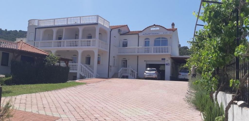 The house is spread over two floors of 626 sqm on a plot of 1 271 sqm and has a total of 11 apartments. Of which one is large, with an area of 70 sqm. The apartments are only 50 meters away from the pebble beach, which leads to a private road. Each apartment has a balcony, a small kitchen and a private bathroom. In front of the house there is a playground, parking, garage, and an additional small house that is also used as an apartment. The environment of this villa is nicely decorated. Behind the house there is a garden.