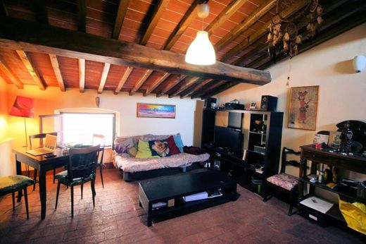 Beautiful Earth roof of about 300 square meters in the heart of Monte Carlo, one of the most fascinating and rich in history and traditions of the Lucca area, the property has been completely renovated respecting the architectural characteristics of the place is located in the old town, well preserved, of the village and is surrounded by the beautiful walls. The town of Montecarlo is positioned on the crest of the ridge that separates the Valdinievole from the plain of Lucca and is situated on an isolated hill at an elevation of 163 metres above sea level. Various events are held here every year, well organised by pro loco, focusing on the presentation of the new wine and oil produced by local companies. The building once formed part of an ancient House, owned by one of the most famous families in the country, which lies on the foundations of a building of the XVI century. The roof is on three levels above ground plus a cellar of about 11 m². Currently for choosing the current owner the property is divided into three units, but according to the needs of the buyer can be experienced to the entire surface with a few modifications. The ground floor has an entrance which leads, with private entrance, to an apartment of 80 sqm composed of double bedroom, twin bedroom, bathroom, living room, kitchen. The living room leads to the outer courtyard of about 75 square meters delimited by walls of the same country and partly covered terrace. On the ground floor there is also a local eviction of about 28 sqm which leads to the cellar. These rooms may be subject to a different destination due to its own needs. Through the entrance leads to the staircase leading to the first floor where there is a double bedroom, single bedroom, bathroom, large living room, dining room, eat-in kitchen which offers breathtaking panoramic views. From the dining room leads to a panoramic terrace of about 13 sqm resting on the walls of the country from where we can admire a panorama that is unparalleled. Through another set of stairs leads to the attic apartment of about 75 m² with large living room with kitchenette, bathroom, two bedrooms. Also on this side of the building you can enjoy the same panoramic view of the first floor. In the renovation of the building, where possible, have been preserved and enhanced those aspects typical of Tuscan as slabs beams and rafters with beams and terracotta floors. From Monte Carlo you can reach Florence in 15 ', 45 ', Lucca in Pisa in 40 ', 15 ', 35 ' in Viareggio in Montecatini.