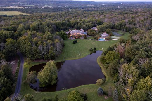 Past the gates, winding up the driveway, you get a sense of the seemingly endless land encircling this brick manor home and finally you realize why this is called the Garden State. The nearly 26 acres are home to heirloom trees and sculpted gardens contained by a stone wall, as well as a pond offering Heaven-on-Earth views from southerly windows. It's hard to fathom that the scene is a mere 55 miles from New York City and even fewer from Philadelphia. Or catch the train, just 10 miles away. The sprawling home and outbuildings, all capped with slate, have custom spaces devoted to every leisurely pursuit from wellness to wine collecting. Rooms are invitingly scaled, eleven of them with masonry fireplaces. A mahogany library with upper gallery is among the more intimate spaces, while the lower level s cherry bar and theater are meant to be enjoyed with guests, as is the airy pool house complete with a fireplace, kitchen, full bath and views of an infinity-edge pool. Three of the large bedrooms open to balconies and all have en suite bathrooms. An apartment and 3-bedroom carriage house offer additional lodging. There are tennis and basketball courts and 7 garages. Imagine being able to offer this ultimate weekend escape to loved ones near and far. If farmland assessment is not continued, the buyer will be responsible for roll back taxes.