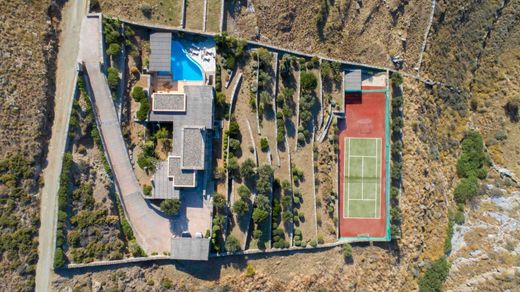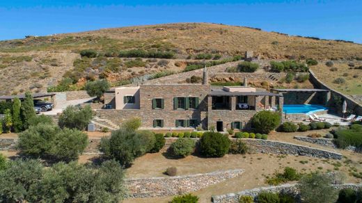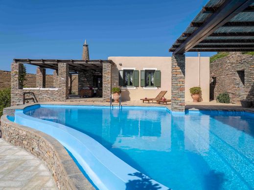 The villa built in 2006 is ideally located on a hill overlooking panoramically the crystal waters of a serene bay and 15-minute car distance from colorful Vourkari, with the island's yachting marina and the lively oceanfront scene of restaurants, taverns, cafes, bars, as well as shops with vintage clothes and room furniture.