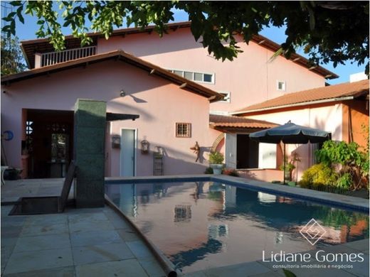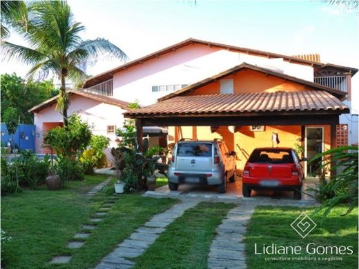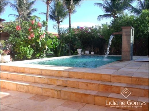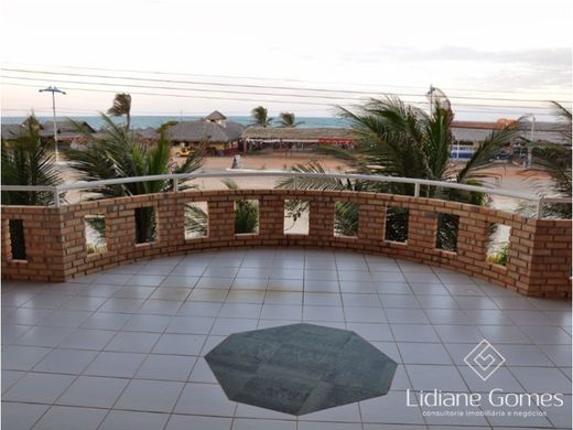 Duplex house in Prainha in Aquiraz (Ceara - Brazil), with 5 bedrooms (3 of which are suites), 2 small living rooms, guest bathroom, kitchen, gardens with swimming pool, deck, guest bathroom, garage with 1 vehicle plus 4 parking spaces at the back and balcony with sea view.