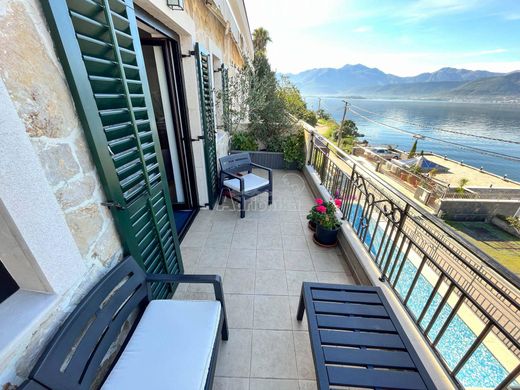 MP-K-8226 Charming house in Perast, after restoration Old stone house, after complete renovation, overlooking the sea. Downstairs kitchen with everything you need, living room, dining room, pantry. In front of the house is a terrace covered with a canopy of grapes. The second and third floors are connected by an internal staircase. Three bedrooms and two bedrooms. Sea view. Plot 108m2. The house has 95m2 living area. The interior is antique and made of white wood and stone.