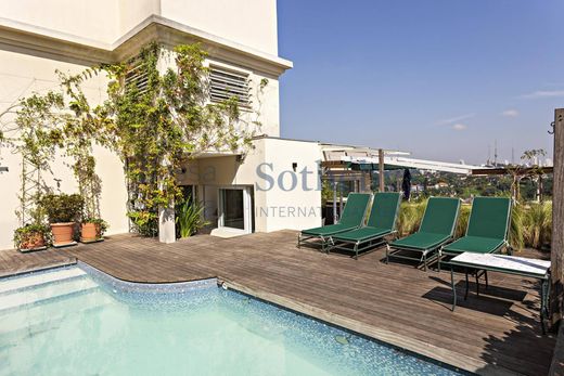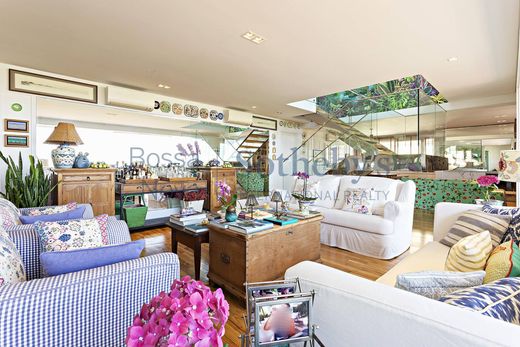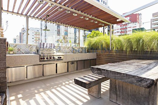 This penthouse, designed with the atmosphere of a private home by the renowned builder Elias Victor Nigri, is located near the prestigious Jardins area. Offering approximately 6,458 sq. ft. of living space, it features abundant natural light and panoramic views over the Pacaembu Valley. The layout includes a spacious living room, dining room, kitchen, breakfast room, TV room, and a private wing with four suites. The interiors showcase extensive use of fine wood throughout the décor. Additional highlights include a private swimming pool and a gourmet area, enhancing the refined and exclusive living experience.