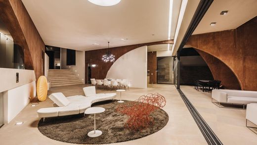 Ten niesamowity, progresywny dom z 8 sypialniami jest na sprzedaż w spektakularnej La Reserva de Alcuzcuz, ~~ Benahavis, na zboczu wzgórza pomiędzy San Pedro a podnóżem Serranía de Ronda. To bezpieczne, ogrodzone osiedle z kontrolowanym wejściem znajduje się kilka minut jazdy od pól golfowych, piaszczystych plaż, San Pedro, olśniewających Puerto Banús, Marbelli, Estepony i Benahavis. Jest wyjątkowy, stworzony według kryteriów zrównoważonego rozwoju, ekologii i architektury bioklimatycznej.~~W otoczeniu terenów zielonych, chronionych lasów sosnowych i luksusowych nieruchomości w prestiżowej dzielnicy Benahavis, na dużej działce o powierzchni ponad 3000 m² mieści się wspaniały główny willa o powierzchni 1264 m² z tarasami o powierzchni 241 m² i dodatkowym pensjonatem. Dzięki położeniu na wzniesieniu oraz orientacji na południe i zachód, niczym niezakłócony panoramiczny widok na morze, Gibraltar i Afrykę zapiera dech w piersiach. ~~ Architektura reprezentuje aktualne trendy w kierunku eleganckiego i współczesnego designu. Łatwo sobie wyobrazić, że stoisz na ogromnym statku wycieczkowym. Nieruchomość jest niezwykła nawet dla najlepszych projektów domów w stylu współczesnym/nowoczesnym, charakteryzujących się płaskim dachem, panoramicznymi szklanymi ścianami, czystymi liniami, otwartymi planami pięter, minimalną dekoracją i unikalnymi, pomysłowymi pomysłami projektowymi. Pojedyncza droga dojazdowa zapewnia bezpieczeństwo i prywatność.~~ Imponująca rezydencja oferuje salon i jadalnię na otwartym planie o powierzchni 100 m² z przesuwanymi drzwiami Schücco, które otwierają się całkowicie na długość 14 m i maksymalnie wykorzystują widoki i świeże powietrze; 8 sypialni i 7 łazienek; designerska kuchnia z wyposażeniem Gaggenau; siłownia z własnym tarasem; sauna z trybem dualnym (fińska parowa i ziołowa); 2 wysokiej klasy kina domowe (Meridien i LINN); piwnica na wino z regałem chłodniczym na 400 butelek za szkłem; garaż na 6 samochodów; oraz ogromne tarasy z salonami, kącikami kawowymi i jadalniami na świeżym powietrzu. Podgrzewany basen (solarny lub pompa ciepła) ma modny drewniany taras i taras słoneczny. ~~ Do budowy tej przyjaznej dla środowiska nieruchomości wykorzystano wyłącznie organiczne, oddychające materiały budowlane i izolacyjne. Dzięki nowym technologiom stał się bardziej odporny na warunki atmosferyczne i energooszczędny. Na sprzedaż luksusowy dom w dobrym stanie, z wyjątkowymi designerskimi meblami, wyrafinowanym oświetleniem, elegancką współczesną kolorystyką i wieloma luksusowymi funkcjami tworzącymi inspirujący dom dla dynamicznego i wygodnego stylu życia. Posiada automatykę domową, sterowanie całym domem poprzez iPada, iPoda, iPhone'a i PC, ogrzewanie podłogowe z niezależnym sterowaniem każdym pomieszczeniem, klimatyzację, jacuzzi, sprzęt najwyższej klasy taki jak serwery audio i wideo, system Instabus, system alarmowy z ochroną naziemną i monitoringiem wideo... to wszystko!~~Warto wspomnieć o wyjątkowo niskich kosztach eksploatacji dzięki wielkogabarytowym układom fotowoltaicznym (a także wydajnej izolacji termicznej z materiałów organicznych, automatycznej wentylacji z regulacją temperatury) porównanie wewnętrzne i zewnętrzne w trybie ogrzewania i chłodzenia. Znajduje się tu prywatna studnia do niezależnego, niemal autonomicznego zaopatrzenia w wodę i nawadniania ogrodu.~~Doskonała okazja do nabycia luksusowej rezydencji na miarę XXI wieku, która sama w sobie jest wspaniałym dziełem sztuki i oferuje styl życia charakteryzujący się wyjątkowym, nowoczesnym komfortem! ~~ Najważniejsze informacje: ~~ Alarm ~ Grill ~ Sala kinowa ~ Podwójne szyby ~ Kominek ~ Wbudowane szafy ~ W pełni umeblowane ~ Pokój gier ~ Dobry stan ~ Goście apartamentu ~ Siłownia ~ Podgrzewany basen ~ Jacuzzi ~ Pralnia pokój~Biuro~Widok panoramiczny~Sauna~Widok na morze~Oddzielne mieszkanie~Panele słoneczne~Ogrzewanie podłogowe (w całym pomieszczeniu)