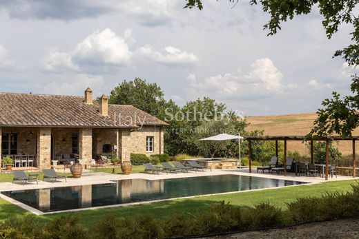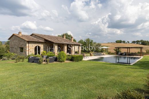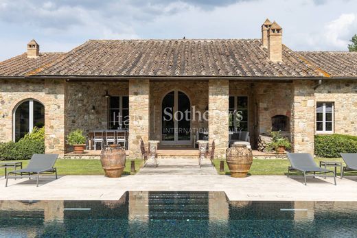 Położona na 4200-akrowym terenie posiadłości, wśród winnic, gajów oliwnych i sadów, ta wyjątkowa posiadłość idealnie łączy tradycję z nowoczesnym luksusem. Położona niedaleko Sieny i Florencji, posiadłość oferuje 32 pięknie odrestaurowane zabytkowe rezydencje, pięciogwiazdkowy ośrodek wypoczynkowy, ekskluzywny klub rezydencyjny oraz XVIII-wieczny zamek przekształcony w hotel z 41 apartamentami, spa, basenami, butikami rzemieślniczymi i pobliskim 18-dołkowym polem golfowym. Wśród rezydencji wyróżnia się niezwykły dom wiejski, położony w jednej z najspokojniejszych i najbardziej malowniczych okolic posiadłości, w pobliżu Casole d'Elsa i Radicondoli. Pierwotnie piec do wypalania terakoty, został przekształcony w uroczą willę, zachowując jednocześnie autentyczne elementy, takie jak kamienne ściany, antyczne trawertynowe podłogi i 6-metrowe sufity z kasztanowymi belkami. Przestronny i jasny salon z dwoma dużymi kominkami w stylu toskańskim prowadzi do designerskiej kuchni, wyposażonej w wysokiej jakości wykończenia, w tym marmurowy zlew, piec Manincor i płytę grzewczą Officine Gullo. Willa posiada trzy główne sypialnie, dwie na piętrze i jedną na parterze, każda z łazienką. Ogród o powierzchni około 2,5 akra to oaza spokoju, z podgrzewanym basenem wyłożonym mozaiką Bisazza, strefami rekreacyjnymi, strefą grillową oraz zadbanym trawnikiem wzbogaconym ozdobnymi roślinami i krzewami, które harmonijnie komponują się z toskańskim krajobrazem. Każdy szczegół został starannie przemyślany, od wysokiej klasy mebli wykonanych przez lokalnych rzemieślników, po zaawansowane technologie, takie jak panele słoneczne i kotły kondensacyjne. Ta nieruchomość ucieleśnia istotę toskańskiego stylu życia, łącząc tradycję, elegancję i innowacyjność w ekskluzywnym otoczeniu. Niezależnie od tego, czy jest to prywatna rezydencja, czy inwestycja, oferuje wyjątkową okazję do doświadczenia autentycznego toskańskiego uroku w otoczeniu ponadczasowego piękna i nowoczesnych udogodnień.
