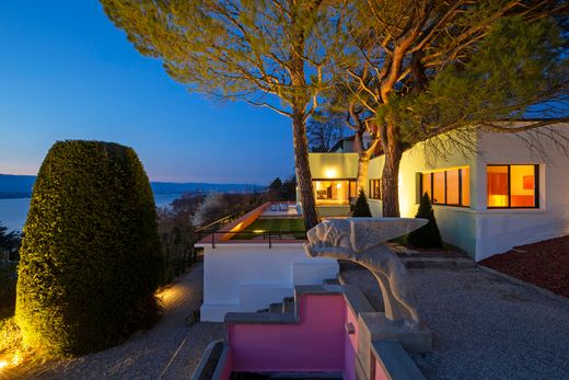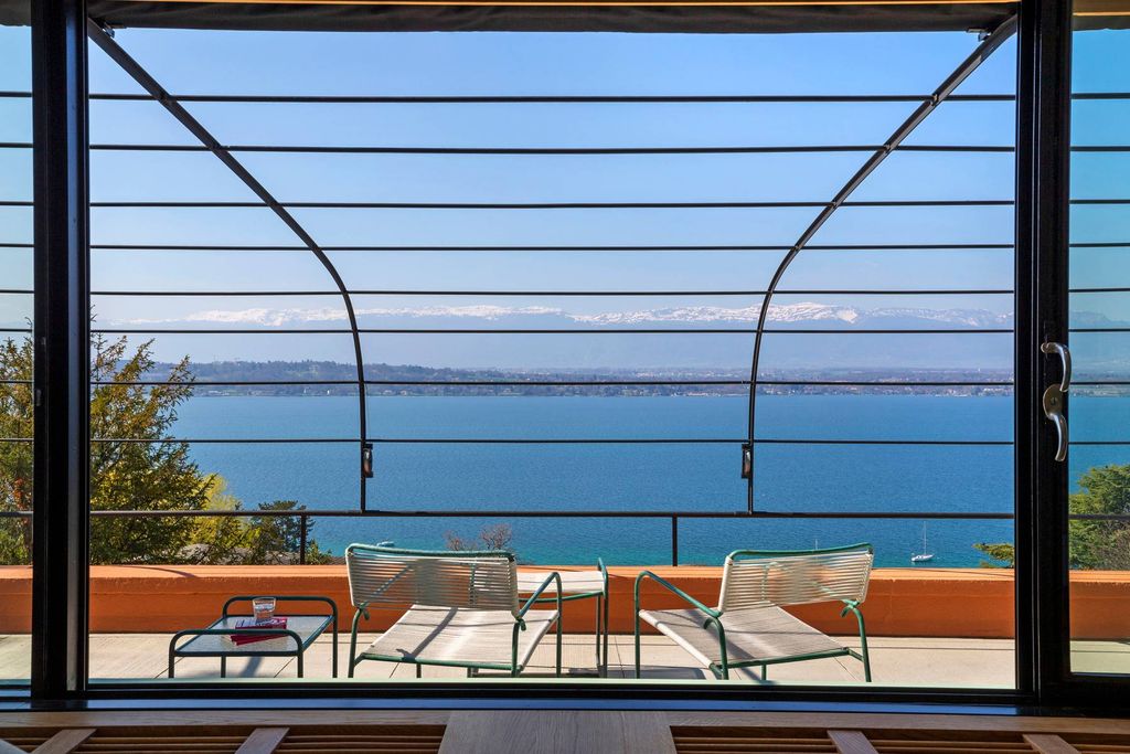 To piękny dom, który łagodnie opada po zboczach Cologny, zwróconych w stronę Jeziora Genewskiego, najelegantszej dzielnicy Genewy. Inspirowana stylem Le Corbusiera willa „Les Ailes” została zbudowana w 1932 roku przez Louisa Vincenta i Jeana-Jacques’a Honeggera. Składa się z trzech połączonych ze sobą „równoległościanów”, ustawionych schodkowo, aby jak najlepiej wykorzystać pochyły teren i stworzyć tarasowe polany, podkreślające jej główny atut: widok. Zapierający dech w piersiach widok na mieniące się wody Jeziora Genewskiego. Przeprowadzono znaczące prace renowacyjne, aby tchnąć nowe życie w ten (zabytkowy) klejnot modernistycznej architektury lat 30. XX wieku. Basen został umieszczony na dużym, nawisającym tarasie, ozdobionym ścianą „brise-soleil” niczym prawdziwe solarium. Monumentalne schody schodzą do ogrodu z fontanną i rzeźbą („skrzydlatego lwa”); Umożliwia dostęp do tarasu i recepcji bez konieczności wchodzenia do domu. Oryginalne kolory elewacji (otynkowane „rustykalnym” tynkiem) zostały odkryte na nowo dzięki badaniom chromatycznym. To złożony proces: wybór tych barw powierzono (szwajcarskiemu) malarzowi Georges’owi Aubertowi, którego bliskie relacje z Le Corbusierem skłoniły go do zainteresowania się polichromią architektoniczną.