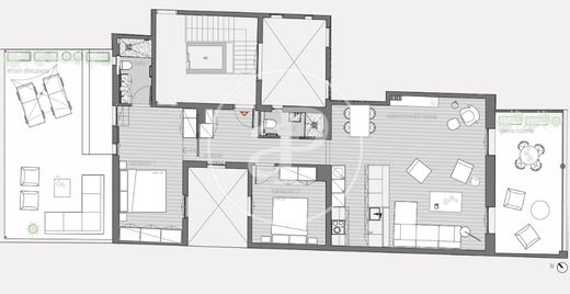 Ten spektakularny penthouse o powierzchni 101 m2 w El Born to perełka architektury, która łączy w sobie klasyczną elegancję królewskiej posiadłości z komfortem i nowoczesnością najwyższej klasy renowacji, której zakończenie zaplanowano na koniec 2025 roku. Położony na piątym piętrze, jego orientacja i duże okna gwarantują wyjątkowe naturalne światło przez cały dzień, podkreślając piękno każdego zakątka domu. Przestrzeń została zaprojektowana tak, aby zapewnić przestronność, funkcjonalność i wygodę. Część dzienna składa się z otwartej przestrzeni salonu i jadalni, wykończonej w neutralnych barwach i z wykorzystaniem materiałów najwyższej jakości, z której można wyjść na taras o powierzchni 17 m2. Ta przestrzeń na świeżym powietrzu jest idealna, by cieszyć się śródziemnomorskim klimatem, stworzyć strefę relaksu lub miejsce do spożywania posiłków na świeżym powietrzu. Ponadto nieruchomość posiada drugi taras o powierzchni 27 m2, będący prywatną oazą dającą wiele możliwości: od strefy relaksu po ogród miejski. Dom składa się z dwóch przestronnych sypialni dwuosobowych, zaprojektowanych tak, aby zapewnić wygodę i spokój. Posiadają wbudowane szafy i duże okna, które zwiększają poczucie światła. Dwie duże łazienki wyróżniają się eleganckim i funkcjonalnym designem, wysokiej jakości wykończeniami, nowoczesnymi bateriami i deszczownicami. Wyposażony w klimatyzację i ogrzewanie, zapewnia komfort przez cały rok. Nieruchomość, w której mieści się ten penthouse, to okazały budynek, w którym zachowano oryginalne elementy o dużej wartości architektonicznej, dodające nieruchomości charakteru i ekskluzywności. Położenie w jednej z najbardziej charakterystycznych dzielnic Barcelony pozwala na cieszenie się otoczeniem przesiąkniętym historią, z galeriami sztuki, uroczymi placami, lokalnymi sklepami i doskonałą kuchnią. Ten penthouse to wyjątkowa okazja dla tych, którzy szukają luksusowego i designerskiego domu w samym sercu miasta, z gwarancją gruntownego remontu i przywilejem posiadania prywatnej przestrzeni na świeżym powietrzu. Jeśli chcesz uzyskać więcej informacji na temat tego ekskluzywnego penthouse'u lub umówić się na jego obejrzenie, nie wahaj się z nami skontaktować!