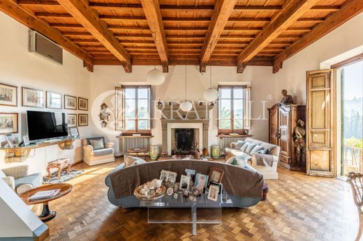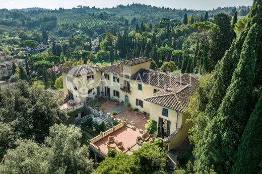 Wspaniała zabytkowa rezydencja o powierzchni około 1100 metrów kwadratowych z prywatnym parkiem w Piazzale Michelangelo. Willa składa się z dwóch dużych lokali mieszkalnych oraz apartamentu dozorcy. Ta elegancka i imponująca nieruchomość jest naprawdę jedyna w swoim rodzaju. Opis Niedaleko Piazzale Michelangelo, ta zabytkowa willa o powierzchni około 1100 metrów kwadratowych prezentuje się w całej swojej krasie i okazałości. Spektakularne podwójne schody prowadzące na duży taras widokowy prowadzą do jasnej i zadbanej głównej rezydencji. Na parterze znajduje się przestronny salon z kominkiem, przestronny salon z widokiem na ogród, kuchnia i jadalnia. Wygodne schody prowadzą na pierwsze piętro, gdzie mieści się część sypialna. Dzięki niezależnemu wejściu z tarasu, pozostałą część mieszkalną można łatwo połączyć z główną rezydencją, tworząc jedną rezydencję. Trzy sypialnie i przestronne przestrzenie mieszkalne, wraz z kuchnią i gabinetem, charakteryzują to skrzydło zabytkowej rezydencji. Apartament na parterze mieści cztery sypialnie dwuosobowe z garderobami i ekskluzywnymi łazienkami, a także wygodną kuchnię i salon. Zarezerwowano dla niego apartament dozorcy z niezależnym wejściem z boku posesji. Charakterystyczny cytrynowy dom z widokiem na ogród. Samochody można wygodnie zaparkować w garażu. Stan i wykończenia Zabytkowa willa jest w dobrym stanie. Wymaga jedynie drobnych remontów. Instalacje są na najwyższym poziomie. Na podłodze położono antyczną terakotę i szlachetne drewno, a w całym domu znajdują się cenne, stare kamienne kominki, odsłonięte belki stropowe i kasetonowe sufity. Przestrzenie zewnętrzne Do willi wjeżdża się przez dwie bramy wjazdowe. Majestatyczny teren obejmuje gaj oliwny i mnóstwo przestrzeni do relaksu. Panoramiczny taras w kształcie litery C jest bardzo przestronny i zachęcający. Zadbany ogród z drzewami owocowymi i kwiatami. Potencjalne zastosowanie Willa znajduje się bardzo blisko historycznego centrum i jest idealna dla osób, które chcą mieszkać w otoczeniu zieleni, a jednocześnie w mieście. Jest odpowiednia dla dużej rodziny i doskonale sprawdzi się jako prestiżowa rezydencja. Lokalizacja: W jednej z najbardziej ekskluzywnych lokalizacji miasta, zaledwie półtora kilometra od historycznego centrum, willa cieszy się dominującym i panoramicznym położeniem. Dzielnica mieszkalna składa się z willi i zabytkowych nieruchomości. W pobliżu znajdują się liczne udogodnienia, a do centrum miasta można dojść przyjemnym spacerem w zaledwie kilka minut.