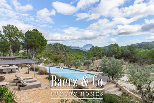Daj się oczarować tej zachwycającej posiadłości o powierzchni 18 hektarów, otoczonej bujną zielenią na wysokości 850 metrów n.p.m. Ta finca znajduje się zaledwie 3 km od urokliwej miejscowości Torremanzanas w głębi lądu Alicante. Nieruchomość jest łatwo dostępna i oferuje absolutny spokój, pełną prywatność oraz zapierające dech w piersiach widoki na Puig Campana. To idylliczne miejsce dla miłośników natury i osób poszukujących spokoju. Dom o powierzchni 450 m² został gruntownie odnowiony w 2022 roku z wykorzystaniem wysokiej jakości materiałów, łącząc autentyczność z nowoczesnością. Światło, komfort i elegancja charakteryzują każdą przestrzeń życiową. Część działki wokół domu jest całkowicie ogrodzona, co zapewnia dodatkowe bezpieczeństwo i spokój. Pozostała część posiadłości obsadzona jest drzewami oliwnymi, migdałowymi i orzechowymi, co pozwala na pełne zanurzenie się w śródziemnomorskiej przyrodzie. Cechy: - w pełni wyposażona kuchnia ze sprzętem AGD najwyższej klasy Miele i Smeg - 7 sypialni - 4 łazienki, w tym 2 z łazienkami en-suite + 1 łazienka na zewnątrz - 5 toalet + 1 na zewnątrz - biuro - pralnia - garaż o powierzchni 65 m² - przestronne tarasy i duży parking - duży podgrzewany basen - 100% samowystarczalności dzięki naturalnej wodzie źródlanej (łączna pojemność magazynowa 21 500 litrów) i 35 panelom słonecznym + akumulatorom litowym najnowszej generacji (43,2 kW) - generator prądu awaryjnego (23 kVA) - 2 kominki - klimatyzacja rewersyjna (pompy ciepła) + indywidualne ogrzewanie w każdym pomieszczeniu - wentylatory w 4 sypialniach na pierwszym piętrze + salonie + kuchni + biurze - kable internetowe RJ45 w całym domu - Starlink (wysoka prędkość) - preinstalowany światłowód Krótko mówiąc, jest to wyjątkowa nieruchomość, idealna dla osób poszukujących niezależności, komfortu, natury i spokoju, bez rezygnowania z nowoczesnych udogodnień i łączności. Idealna oaza spokoju dla dużych rodzin lub na pobyt ze znajomymi.