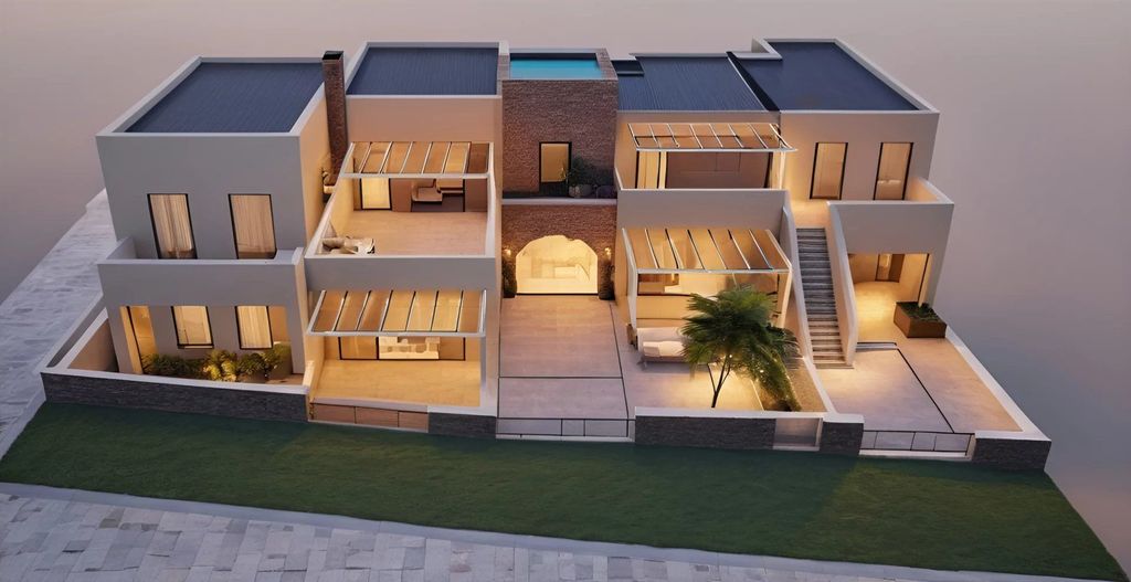 Zaledwie 2,7 km od zachwycającej plaży Lolantonis, ten ekskluzywny kompleks dwóch niezależnych willi łączy w sobie cykladzką elegancję, najwyższej jakości materiały i niczym niezakłócony widok na Morze Egejskie. Budowa jest obecnie w toku, a oddanie pod klucz planowane jest na wiosnę 2027 roku. Najważniejsze cechy: - Całkowita powierzchnia użytkowa: 252 m² (Willa A: 79 m² + Willa B: 173 m²) - Duże tarasy o łącznej powierzchni ponad 70 m² - 6 sypialni, 5 łazienek, przestronne salony z kominkami - Opcjonalnie prywatne baseny (30 000 euro każdy) - Wysokiej klasy wykończenia: marmur, kamień naturalny, drewno - Łatwy dojazd z głównej drogi, spokojna okolica - Zagospodarowane ogrody i oddzielny parking - Możliwość zakupu osobno lub razem. Wyjątkowa okazja dla osób poszukujących wyjątkowej nieruchomości, idealnej dla rodziny lub jako luksusowa inwestycja pod wynajem.