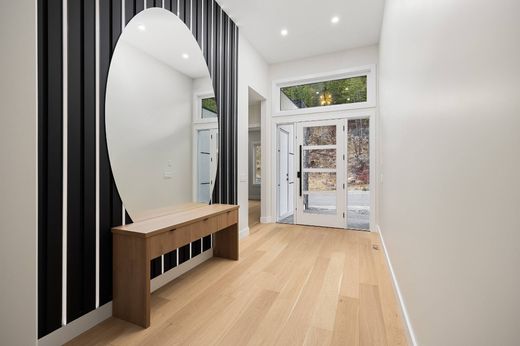Witamy w tej niezwykłej, luksusowej rezydencji, wybudowanej w 2026 roku przez Empirical Homes, oferującej zapierające dech w piersiach widoki na góry i bezkompromisowe połączenie luksusu, innowacji i przemyślanego designu. Ta rozległa posiadłość z ośmioma sypialniami i sześcioma łazienkami idealnie nadaje się dla dużych rodzin, rodzin wielopokoleniowych lub osób poszukujących potencjału dochodowego. Oferuje w pełni legalny apartament z dwiema sypialniami i jedną łazienką, osobnym wejściem i prywatną pralnią, a także wygodne wewnętrzne drzwi wejściowe, pozwalające na włączenie apartamentu do głównego domu, jeśli zajdzie taka potrzeba. Wnętrze zdobią efektowne akcenty z czarnego marmuru, podłogi z twardego drewna, niestandardowe oświetlenie wpuszczane w sufit oraz wbudowane elementy, takie jak podświetlane półki w szafach, designerskie kominki, elegancki barek, zintegrowany system głośników i kompleksowy system monitoringu. Ściany dekoracyjne podkreślają charakter sypialni, a zaprojektowane na zamówienie szafki we wszystkich łazienkach i kuchni z przyprawami odzwierciedlają wyjątkowy, luksusowy kunszt wykonania. Pod garażem płytowym znajduje się w pełni wyposażona, zaciemniająca sala multimedialna z wbudowanym oświetleniem akcentującym, tworząca niepowtarzalne, prywatne kino domowe. Główny apartament to prawdziwa oaza spokoju z ogromną, oświetloną garderobą i łazienką inspirowaną spa, wyposażoną w wannę, przeszkloną kabinę prysznicową, dwie umywalki, ogrzewanie podłogowe i podgrzewany wieszak na ręczniki. Dopełnieniem całości jest garaż na trzy samochody z posadzką epoksydową. Łącząc odważną, nowoczesną elegancję z wysokiej klasy kunsztem i panoramicznym otoczeniem, ten zachwycający dom w Black Mountain oferuje luksus w najlepszym wydaniu. Umów się na prezentację, aby osobiście zapoznać się z bogatą listą ulepszeń. Obowiązuje podatek GST.