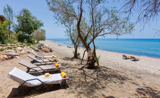 Ella to oszałamiająca willa położona przy zacisznej plaży na południu Krety. Łącząc w sobie prostotę i luksus w dziewiczej okolicy, ta nieruchomość oferuje to, co najlepsze na Krecie. Willa na plaży to naprawdę relaksujący dom z dala od domu na wakacje. Szeroka gama udogodnień i usług oferowanych w tym zacisznym miejscu oraz w prywatnym ośrodku gwarantuje, że rodzina lub duża impreza mogą spędzić przyjemny czas i autentyczne wakacje w Grete. Piękna piaszczysta plaża, krystalicznie płytka i ciepła, błękitna woda, wydmy pokryte kwitnącymi w sierpniu liliami piaskowymi wraz z przyległym wzgórzem porośniętym sosnami i cydrami tworzą wyjątkowe otoczenie. Na tej zacisznej plaży żółw morski caretta caretta składa jaja co roku w czerwcu i w połowie sierpnia, kiedy małe żółwie wychodzą z gniazda i udają się do morza, rozpoczynając swoją wielką podróż. Przejrzystość nieba w połączeniu z brakiem świateł w okolicy zapewnia najbardziej niesamowite nocne niebo. Od października do marca każdego popołudnia słońce nurkuje w morzu przed Beach House, tworząc najbardziej inspirujące obrazy na horyzoncie. Zbudowana praktycznie nad morzem, goście mają możliwość wyjścia z Elli i wejścia do morza, ciesząc się zaciszem plaży, w cieniu tamaryszków posadzonych na piasku na skraju posiadłości. Willa składa się z dwóch głównych bloki, dom główny, blok pensjonatowy i dodatkowy pokój gościnny nad morzem. Ella posiada osiem sypialni i dwa pokoje rodzinne po dwie sypialnie każdy, w sumie dwanaście sypialni. Główne wejście prowadzi do przestronnego salonu z przepięknym widokiem na morze i góry. Otwarta przestrzeń salonu połączona jest z jadalnią i kuchnią, która jest w pełni wyposażona w profesjonalny sprzęt, w którym Twój szef kuchni może z łatwością gotować dla ponad 30 osób. Cztery zadaszone pergolą tarasy z wbudowanymi sofami i stołami jadalnymi zapewniają wyjątkowe chwile pełnego relaksu. Wyobraź sobie lunch na świeżym powietrzu w cieniu lub kolację ze wspaniałym widokiem na Morze Libijskie. Na dwóch tarasach znajduje się grill, jeden nad morzem. Dobrze wyposażone przestrzenie mieszkalne na świeżym powietrzu tworzą atmosferę prawdziwego prywatnego kurortu z widokiem na wieczne błękitne morze! Jeśli szukasz naprawdę wyjątkowych i autentycznych wrażeń na Krecie, Ella powinna być Twoim wyborem!