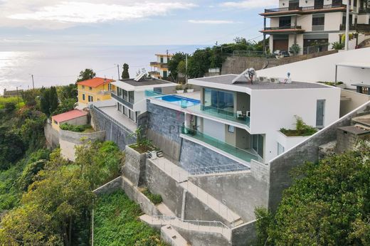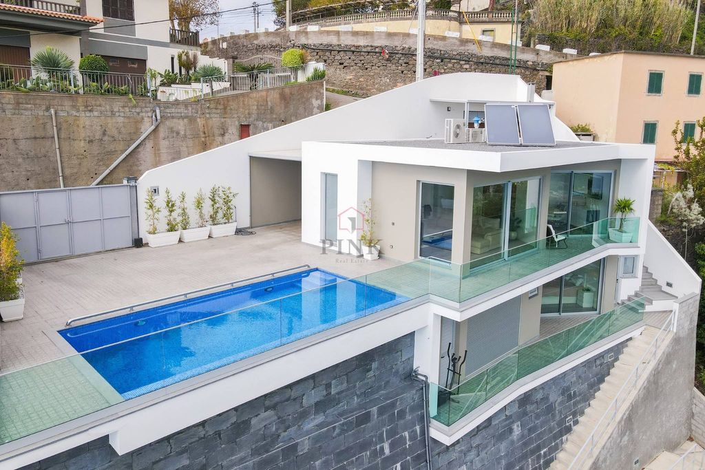 No rés do chão, é recebido por uma generosa sala de estar e jantar em open space, criando um ambiente acolhedor e luminoso. A cozinha totalmente equipada oferece a praticidade necessária para os amantes da culinária. Uma casa de banho social completa este piso, garantindo conveniência adicional. Ao sair para o exterior, é recepcionado por um estacionamento coberto para um carro, ideal para preservar o seu veículo, e uma piscina que não apenas oferece momentos refrescantes, mas também uma vista espetacular para as montanhas e o oceano Atlântico. O churrasco proporciona uma oportunidade perfeita para desfrutar de refeições ao ar livre enquanto aprecia as paisagens deslumbrantes.