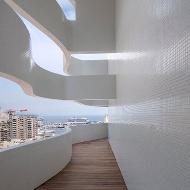 Luxo aparente. No bairro histórico de Mônaco, o Stella, dos arquitetos Jean-Pierre Lott e Alexandre Giraldi, é um edifício residencial de uso misto com formas sinuosas e aerodinâmicas, com apartamentos, lojas, uma escola e escritórios, que se apresenta como uma nova escultura urbana icônica. O Stella, apartamento de 4 quartos, 170 m², 2 quartos, 2 vagas de garagem.