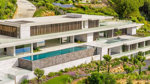 Distribuída por quatro pisos e construída num terreno de 4.405 m², tem uma área construída de 2.438 m². Possui sete quartos en-suite, espaços abertos com tetos altos, uma cozinha de designer e terraços com mais de 1.000 m². A piscina de borda infinita de 25 metros adiciona um toque impressionante ao conjunto.