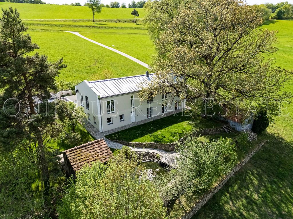 Descrição do imóvel: Aninhada no coração da Floresta da Baviera, em uma serra ensolarada entre Passau e Regensburg, esta casa excepcional se apresenta como um refúgio para quem busca independência, qualidade e conexão com a natureza. A localização tranquila, exposta e isolada, sem vizinhos diretos, oferece oportunidades raras para uma vida independente, fora das estruturas convencionais. O imóvel foi extensivamente reformado, redesenhado e ampliado a partir de 2013. O resultado é um edifício residencial de alta qualidade, de construção sólida, com aproximadamente 189 m² de área útil interna, distribuídos em dois andares. Áreas externas, como o terraço de aproximadamente 70 m², elaboradamente projetado e voltado para o sul, não estão incluídas, mas oferecem um aumento significativo no espaço útil e na qualidade de vida. Ambos os níveis são espacialmente conectados, mas também podem ser usados separadamente graças a uma conexão preparada para uma segunda cozinha e seu próprio acesso sem barreiras. Isso cria máxima flexibilidade para uso multigeracional, moradia e trabalho, ou uma combinação de ambos. O andar superior impressiona pelo seu generoso efeito espacial, pelas treliças expostas do telhado, pelo piso de tábuas de carvalho de alta qualidade e pelas áreas de estar iluminadas. A sala de estar/jantar central, com uma cozinha moderna e uma salamandra a lenha adicional, transmite conforto e independência. O quarto, com casa de banho em open space, banheira independente e vistas panorâmicas, realça o carácter exclusivo da casa com o seu design elegante. Todo o piso é aquecido por um sistema de aquecimento de piso completo – tal como o piso térreo. O piso térreo impressiona pelas paredes sólidas em pedra natural, pelo agradável clima interior em aproximadamente 72 m² de área útil e pelas salas de estar adicionais bem iluminadas com múltiplos acessos ao jardim. Também aqui, azulejos de alta qualidade com aspeto de madeira e aquecimento de piso em toda a superfície garantem o conforto de um lar. A infraestrutura preparada permite uma fácil conversão numa unidade habitacional autónoma. As áreas exteriores são bem concebidas e próximas da natureza, tornando-as fáceis de manter. Árvores frutíferas, canteiros elevados, uma estufa de 18 m² e um lago de jardim com alimentação natural integram-se perfeitamente à propriedade. O amplo terraço virado a sul, com cerca de 70 m², apresenta pedra natural, uma fonte e luz solar durante todo o dia, criando um espaço relaxante que complementa o interior. Tecnicamente, a casa está bem equipada: o aquecimento é fornecido principalmente por um eficiente sistema de aquecimento central a óleo, complementado por energia solar térmica e pelo já mencionado fogão a lenha. A própria nascente da casa alimenta um sistema de água doce autossuficiente com tratamento de alta qualidade – confiável mesmo durante períodos de maior consumo, por exemplo, para irrigação do jardim. Uma moderna estação de tratamento de esgoto com três câmaras, sem eletricidade, garante um descarte de águas residuais de longa duração e baixa manutenção. A energia é fornecida pela rede pública, com uma conexão adicional para um gerador a diesel já instalada. A modernização de um sistema fotovoltaico com armazenamento em bateria já está planejada – para aqueles que desejam desenvolver ainda mais sua independência. Esta propriedade é o lar ideal para quem valoriza paz, privacidade e um alto grau de independência, seja como ponto focal permanente ou como refúgio longe das estruturas tradicionais de serviços públicos. Descrição da localização: Esta propriedade desfruta de uma bela localização isolada, aninhada na paisagem montanhosa da Floresta da Baviera, no vilarejo de Ölberg, parte da cidade mercantil de Schöllnach, no distrito de Deggendorf. A aproximadamente 800 metros acima do nível do mar, diretamente adjacente à floresta Sonnenwald e perto da montanha Brotjacklriegel, o cenário oferece uma combinação excepcional de tranquilidade, proximidade com a natureza e vistas impressionantes. Também oferece acesso direto a uma das áreas de caminhada e lazer mais populares da região. A infraestrutura ao redor é rural, mas as conexões são convenientes: Deggendorf e Passau podem ser alcançadas pelas rodovias A3 e A92 em cerca de 30 minutos, e Regensburg e Landshut em menos de uma hora. Duas estações de trem intermunicipais ficam a cerca de 40 minutos de distância. A cerca de dez minutos de carro, você encontrará lojas como Rewe, Edeka e Netto, além de médicos e uma escola primária e secundária na vizinha Schöllnach. Além disso, a região oferece inúmeros destinos de excursão, como o Treetop Walk no Parque Nacional da Floresta da Baviera, a Vila Museu da Floresta da Baviera e o parque de aventuras em St. Englmar. A localização é particularmente adequada para quem busca um ambiente tranquilo e natural, com bastante espaço e privacidade – sem precisar abrir mão completamente de conexões funcionais e da infraestrutura do dia a dia.