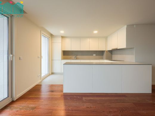 Já a zona mais privada do apartamento é composta por hall de quartos, uma suite com casa de banho privativa, um quarto adicional, uma casa de banho completa e zona de lavandaria para tratamento de roupa.