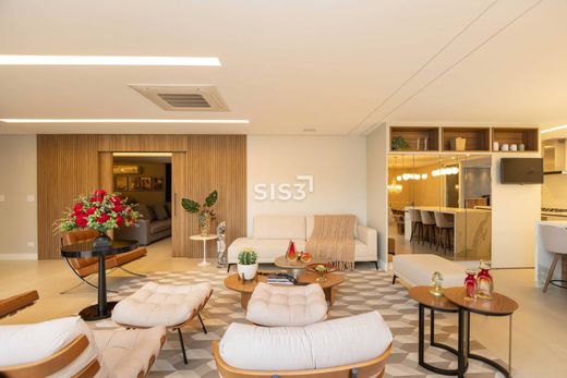 A área social integra uma sala espaçosa com cozinha Florense de ponta a ponta, em um ambiente fluido que convida. O home theater entra em cena como uma extensão do conforto: cinema em casa, com som envolvente e zero distrações externas.