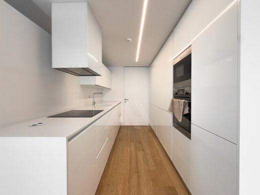 A cozinha totalmente equipada combina design contemporâneo com funcionalidade, oferecendo eletrodomésticos de topo e materiais de excelência.