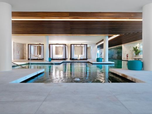 Destaca-se uma piscina exterior no 24º piso, com vista infinita e panorâmica sobre a cidade, uma piscina interior para adultos (24,5 x 5 m) e outra para crianças, duas salas de festas, um ginásio de topo equipado com máquinas Technogym, kids club, um spa, salas de reuniões, espaços de co-work e um pátio interior com extensas áreas ajardinadas complementadas por um campo de padel.