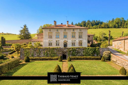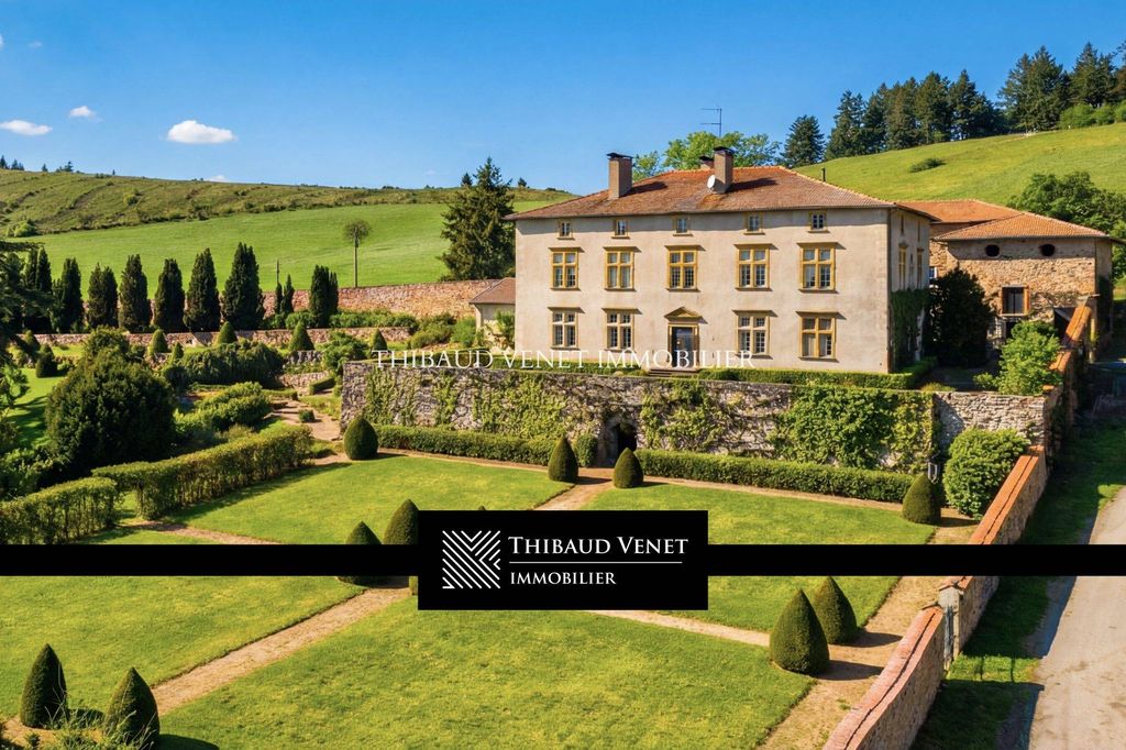 Castelo do século XVII na região de Haut-Beaujolais. O grupo de agências THIBAUD VENET IMMOBILIER tem o prazer de apresentar esta propriedade excepcional, um majestoso castelo do século XVII. Situado na região de Haut-Beaujolais, a poucos quilômetros do Lago dos Sapins e a 65 km de Lyon, este lar familiar foi renovado, preservando seu caráter original. É uma verdadeira testemunha viva da história, tendo acolhido famílias prestigiosas e figuras proeminentes ao longo dos séculos. ATENÇÃO: Eventos públicos (casamentos, seminários, etc.) não são permitidos. História: A propriedade, mencionada pela primeira vez em uma escritura de venda de 1509, tornou-se propriedade de uma família notável em 1621. O proprietário anterior vendeu a propriedade no início do século XIX para outra família, que lá viveu até 1830. Após diversas mudanças de proprietários ao longo dos séculos, a propriedade foi adquirida em 1945 por uma organização religiosa para ser usada como centro de retiro e lazer, função que manteve até o final da década de 1960. Em 1970, uma nova família adquiriu a propriedade com o objetivo de restaurá-la à sua antiga glória. Após a morte de uma das herdeiras, a propriedade passou para seus dois netos, que agora a administram. Descrição da propriedade: Esta prestigiosa propriedade compreende uma casa senhorial e vários anexos, todos inseridos em um magnífico parque de 1,7 hectares, oferecendo uma atmosfera tranquila e preservada. Os edifícios principais datam de 1621 e estão dispostos ao redor de um pátio pavimentado. Esta propriedade se destaca por seu charme e caráter, tanto histórico quanto refinado, meticulosamente mantido por seus atuais proprietários. A Casa Senhorial: O edifício principal possui 13 cômodos distribuídos em 3 andares. O interior é composto por 6 quartos espaçosos, 2 salas de estar elegantes, 2 salas de jantar, uma sala de bilhar e música, uma cozinha ampla e totalmente equipada, uma lavanderia e dois banheiros, um deles com sauna. Cada cômodo desfruta de uma atmosfera acolhedora, com janelas altas com caixilhos e lareiras de época que conferem um caráter único a esta propriedade histórica. Anexos e Instalações: A propriedade também inclui diversos anexos, como um antigo celeiro, oficinas e uma casa de caseiro de 85 m². O sótão e os porões, em excelente estado de conservação, oferecem inúmeras possibilidades de adaptação para personalizar este espaço ao seu gosto. Tudo isso está perfeitamente integrado ao entorno natural e histórico da propriedade. Os Jardins e a Área Externa: O parque de 1,7 hectare apresenta um belo jardim francês, um pomar e um lago natural alimentado por nascentes. Árvores centenárias, como tílias, cedros do Líbano e pinheiros, adornam os jardins, criando um cenário natural de beleza incomparável. O canal que margeia o parque e o anexo adjacente completam essa cena idílica. Características técnicas e manutenção: O castelo passou por uma cuidadosa reforma, especialmente no telhado, no sistema de aquecimento central a óleo e nas instalações elétricas, que foram modernizadas. Os materiais utilizados, como a pedra local, foram preservados para manter a autenticidade do edifício. Manutenção regular de...
