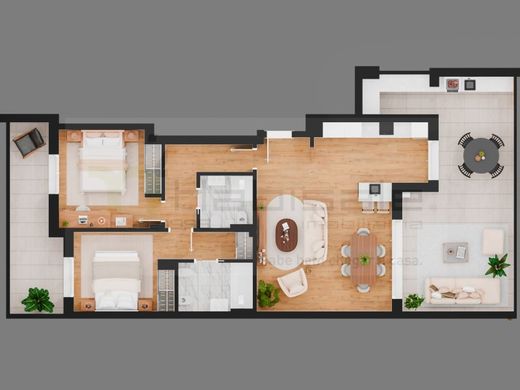 A zona social desenvolve-se em open space, com ligação direta a um amplo terraço, ideal para refeições ao ar livre e momentos de lazer. A área privada é composta por dois quartos, uma suíte confortável e varandas generosas, garantindo conforto, funcionalidade e qualidade de vida para toda a família.