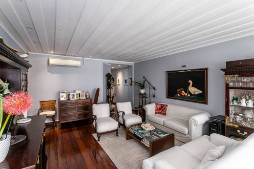 Cobertura duplex ventilada e bem iluminada, localizada no Leblon, com planta funcional distribuída em dois pavimentos. No primeiro piso, a área social conta com living, sala de jantar e dois dormitórios, sendo uma suíte com sacada, além de um segundo dormitório atualmente utilizado como espaço de trabalho. Este nível dispõe ainda de banheiro social, cozinha, lavanderia e dependências completas para funcionários. No segundo pavimento, a área íntima apresenta a suíte principal com closet, sala de TV e banheiro completo, além de um terraço amplo com chuveirão e espaço gourmet, favorecendo o uso externo. O imóvel conta com uma vaga de garagem registrada na escritura.