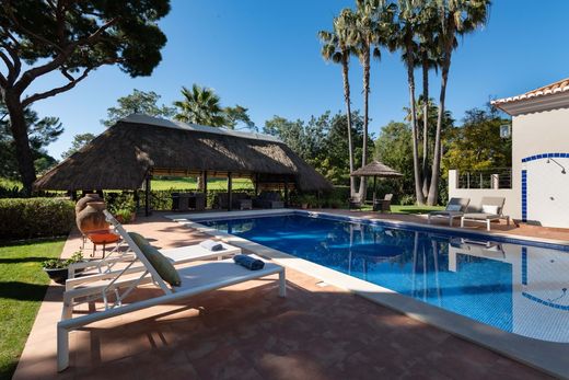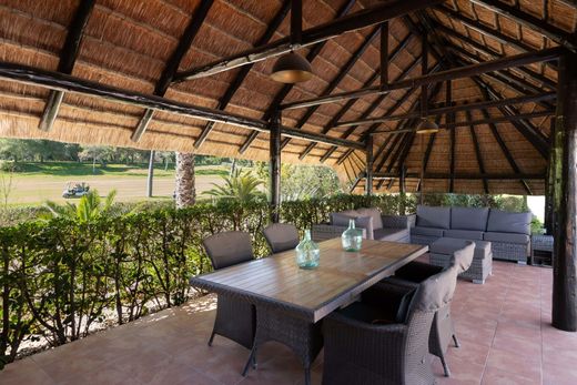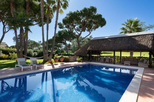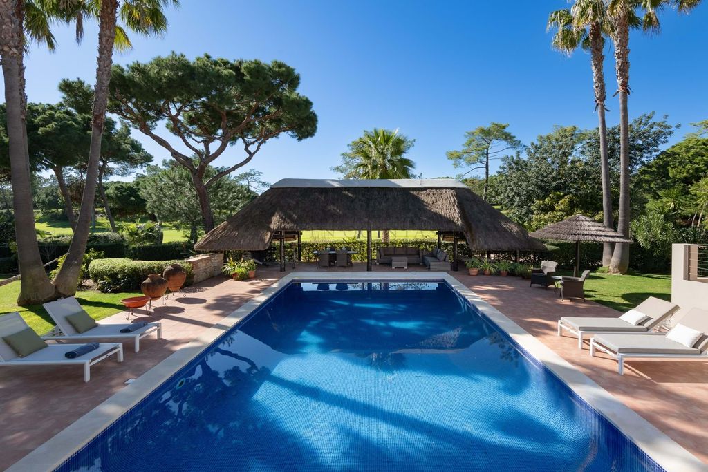Espaçosa moradia de cinco quartos em primeira linha de golfe, localizada em Vila Sol. A casa encontra-se bem conservada e dispõe de um lote excecionalmente grande, orientado a sul/poente, com um jardim maduro. Foi construída em 2004 em formato de U, envolvendo a ampla piscina (12,5 x 6 m). Um grande terraço coberto, com acesso direto a partir das zonas da sala de estar e da cozinha, é o espaço ideal para relaxar no verão. Descendo alguns degraus, chega-se ao nível da piscina, onde se encontra uma pérgola de colmo muito especial, um excelente local para atividades de ginásio seguidas de um almoço à sombra, com vista para o campo de golfe.