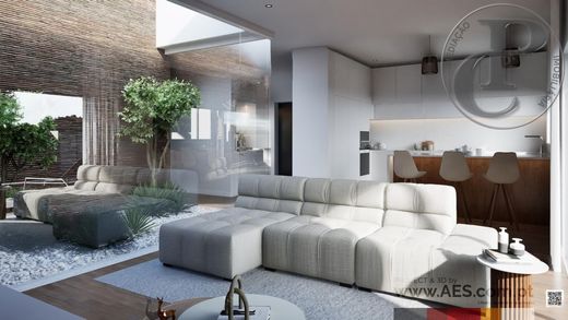 Este exclusivo T4 com 140m² une uma arquitetura moderna a um elegante pátio interno, uma pérgola com linhas refinadas, um espaço para refeições ao ar livre, uma churrasqueira embutida e uma piscina privada, formando um ambiente singular de conforto, sofisticação e bem-estar.