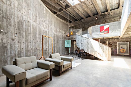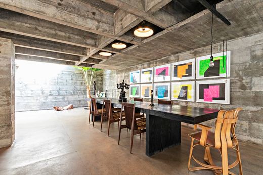 Casa Brutalista de 1970, com projeto de Paulo Mendes da Rocha, reconhecido com o mais importante prêmio da arquitetura mundial, o Prêmio Pritzker, além do Leão de Ouro na Bienal de Veneza, o Prêmio Imperial do Japão e a Royal Gold Medal, concedida pelo Royal Institute of British Architects a pessoas de significativa influência no avanço da arquitetura. A casa possui projeto excepcional, que desafia o convencional, moldando os espaços em concreto armado aparente, evidenciando os traços da arquitetura brutalista. A proposta de uma nova forma de viver, conectando os espaços internos e externos da casa. Sala de estar em grande vão, pé direito alto e iluminação natural através de claraboias. Sala de jantar e sala de estar com lareira. Cozinha espaçosa com armários planejados. No piso superior a área intima, com uma ala reservada exclusivamente para a suíte master. Na outra ala, dois dormitórios servidos por dois banheiros, mais um escritório. Piscina em concreto armado . Na cobertura, um espaço ao ar livre com espelhos d'água e carpas, intercalados aos vãos livres, proporcionando equilíbrio térmico e luminosidade para a casa. No subsolo a área de serviço com lavanderia, três dormitórios, banheiro e depósito. Vagas descobertas para seis carros.