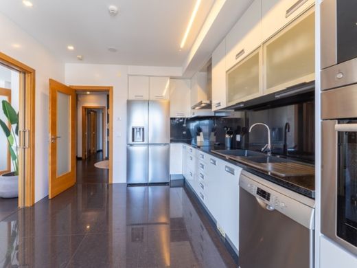 A cozinha encontra-se totalmente equipada e dispõe de acesso direto a varanda, enquanto a sala de estar, com uma ampla superfície envidraçada, proporciona um ambiente luminoso e acolhedor, com ligação fluida ao exterior.