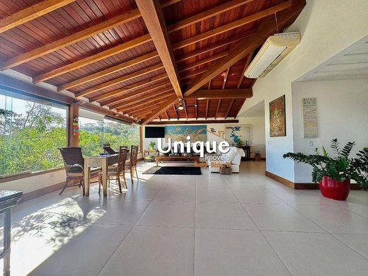 Composta por 6 aconchegantes suítes ( sendo uma externa ), uma espaçosa sala com vista, dividida em 2 ambientes com cozinha integrada, lavabo, uma segunda sala no pavimento inferior dividida em sala de tv e jantar, lavanderia e residência de caseiro.