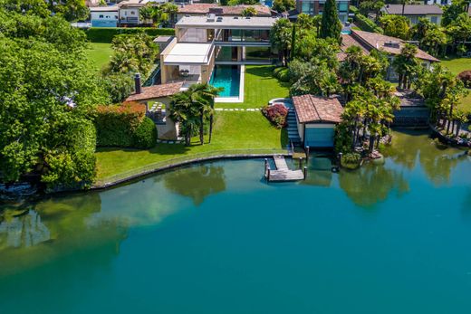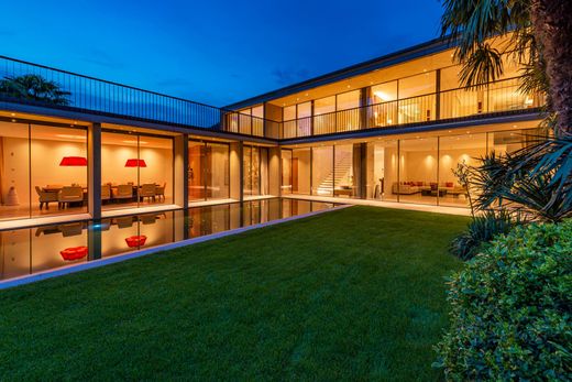 Потрясающая вилла на берегу озера с бассейном и эллингом. Вилла прекрасно расположена на берегу озера Лугано и является скрытой жемчужиной этого региона. Она предлагает моменты спокойствия и уединения в сочетании с близостью к Лугано. Внутри стеклянные фасады от пола до потолка открывают вид на озеро и сад из всех комнат. Современный дизайн интерьера был создан известным архитектором и предлагает современную и комфортную жизнь с плавной связью с внешним миром. Вход открытой планировки ведет в гостиную и в сад. Просторная обеденная зона, соединенная с полностью оборудованной кухней и крытой террасой, предлагает идеальное место для моментов мечты с семьей и друзьями. На открытой площадке имеется просторная гостиная/бар, которая является идеальным местом для барбекю. На втором этаже расположены три просторные и хорошо оборудованные спальни с ванными комнатами и общий балкон с панорамным видом на озеро. В отдельно обустроенной главной спальне также есть гардеробная и ванная комната. В подвале находится незавершенная СПА-зона, а также технические помещения, прачечная и многофункциональные помещения. Особенности: Технология Система отопления тепловой насос Подогрев полов Система циркуляции воздуха Система домашней автоматизации Видеонаблюдение Архитектура Большие стационарные элементы образуют стеклянный фасад от пола до потолка на обоих этажах по всей южной стороне. Консольные открытые бетонные крыши защищают помещения от слишком большого количества солнца. Раздвижные двери обеспечивают безбарьерный доступ из всех комнат на террасы и на открытую площадку. Залитые светом комнаты, просторные и удобные – границы между внутренним и внешним растворяются и создают ощущение жизни на лоне природы. Открытый бассейн с подогревом и автоматическим навесом, эллинг для барбекю с причалом для подъема лодок, 3 гаража, 4 парковочных места.