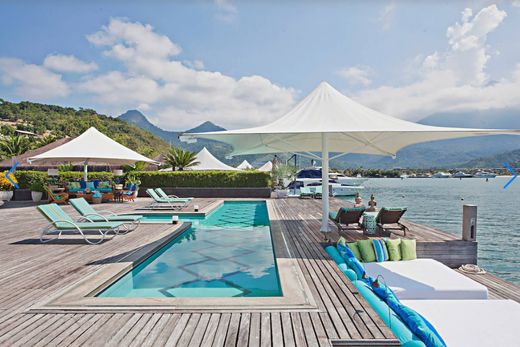 Расположенный в кондоминиуме Porto Frade в Ангра-дус-Рейс, этот потрясающий дом расположен прямо на набережной, с палубой для отдыха с дорожкой для бассейна и местом для стоянки яхт длиной более 100 футов. В резиденции есть семь спален, включая шесть люксов, в которых с комфортом могут разместиться до 14 гостей. Социальная зона включает гостиную с телевизором, которая плавно интегрирована со столовой, и игровую комнату с бильярдным столом, а также полностью оборудованную кухню и прачечную. Снаружи, на просторной палубе находится подогреваемый бассейн с гидромассажной ванной, идеально подходящий для отдыха и релаксации. Ilha Capivari, охватывающий 6500 м², расположен всего в 300 метрах от кондоминиума Porto Frade и отеля Fasano. Он предлагает первоклассную инфраструктуру, включая тренажерный зал, массажный кабинет, бассейн, сауну, цистерну емкостью 140 000 литров, мощный генератор и трансформатор для бесперебойного электроснабжения, радиорубку и машину для производства льда. Подводные линии обеспечивают пресной водой, электричеством, телефоном и услугами внутренней связи, в то время как на материке имеются отдельные гаражи для морского оборудования и дом смотрителя. Порто-Фраде дополняет впечатления своим клубным домом, тренажерным залом, теннисными кортами и многофункциональными площадками, бассейном, сауной и рестораном. Знаменитое поле для гольфа на 18 лунок, сертифицированная вертолетная площадка и тропы, ведущие к водопадам и бассейнам для дайвинга, добавляют привлекательности региону. На бульваре Карлоса Борхеса, рядом с отелем Fasano, есть магазины товаров повседневного спроса, модные бутики, гастрономы и рестораны, предлагающие разнообразную гастрономию и развлечения, чтобы максимально использовать ваше пребывание в Фраде.